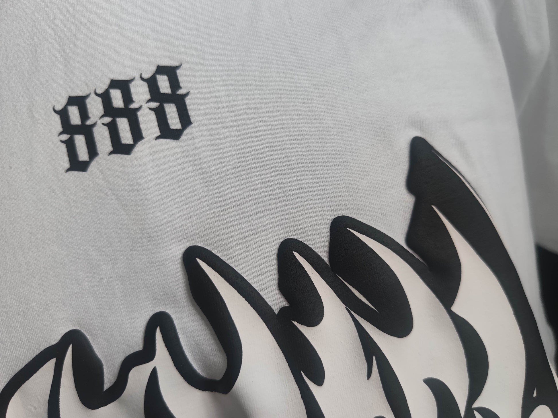 - Puff 3D Print Logo (main front logo and back eyes), Screen print for 888 and text on the back.